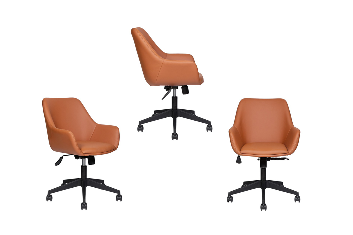 Стильное офисное кресло с глубокой посадкой и колесами для паркета — можно двигаться без риска поцарапать пол. Главный плюс — механизм качания «мульти-топ-ган» с возможностью зафиксировать спинку в разных положениях. Нужно немного расслабиться — отклонитесь назад и закрепите устройство под удобным углом.